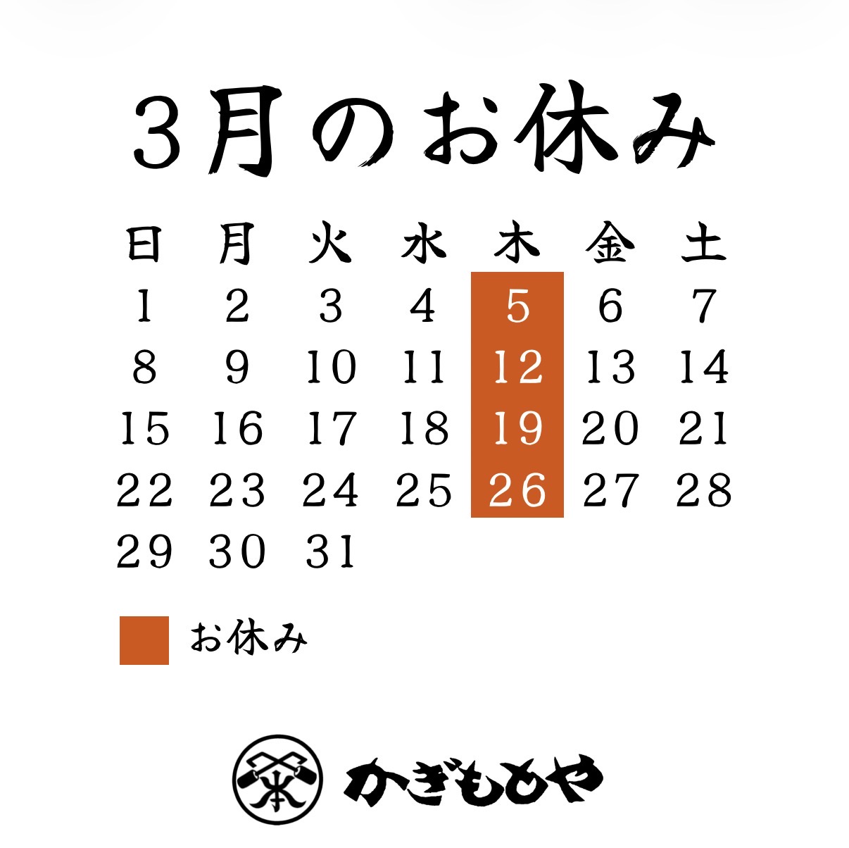 3月のお休みとなります。